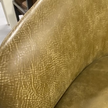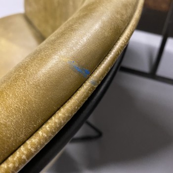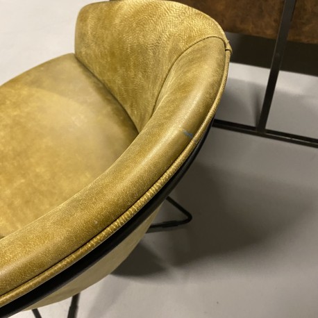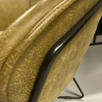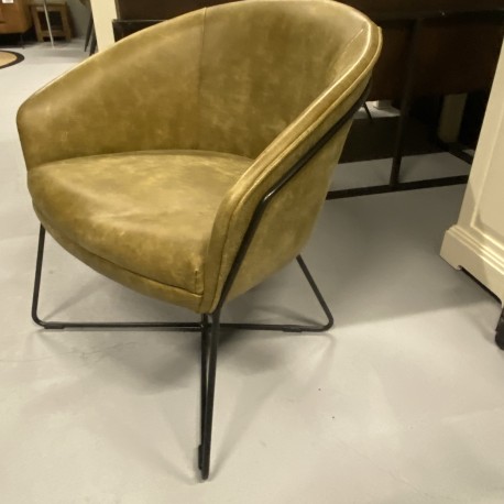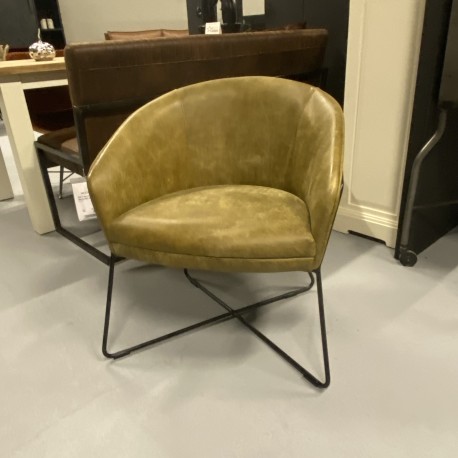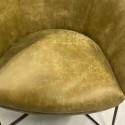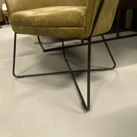 Het moderne zwarte metalen onderstel geeft de fauteuil een stoer en eigentijds karakter, terwijl de warme groene tint zorgt voor een natuurlijke en elegante uitstraling in jouw interieur. Een echte eyecatcher die past in zowel moderne als industriële woonstijlen.