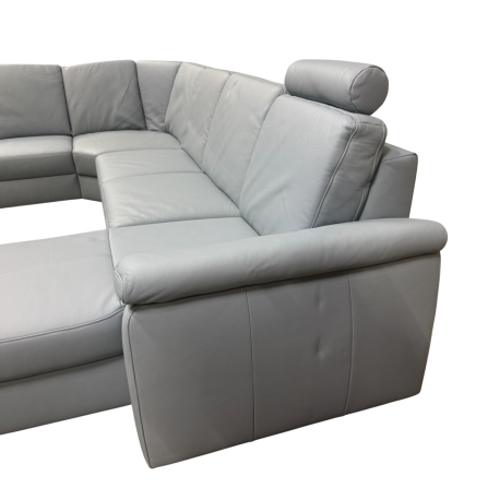 Leren U-bank Renan – Luxe designbank in babyblauw leer